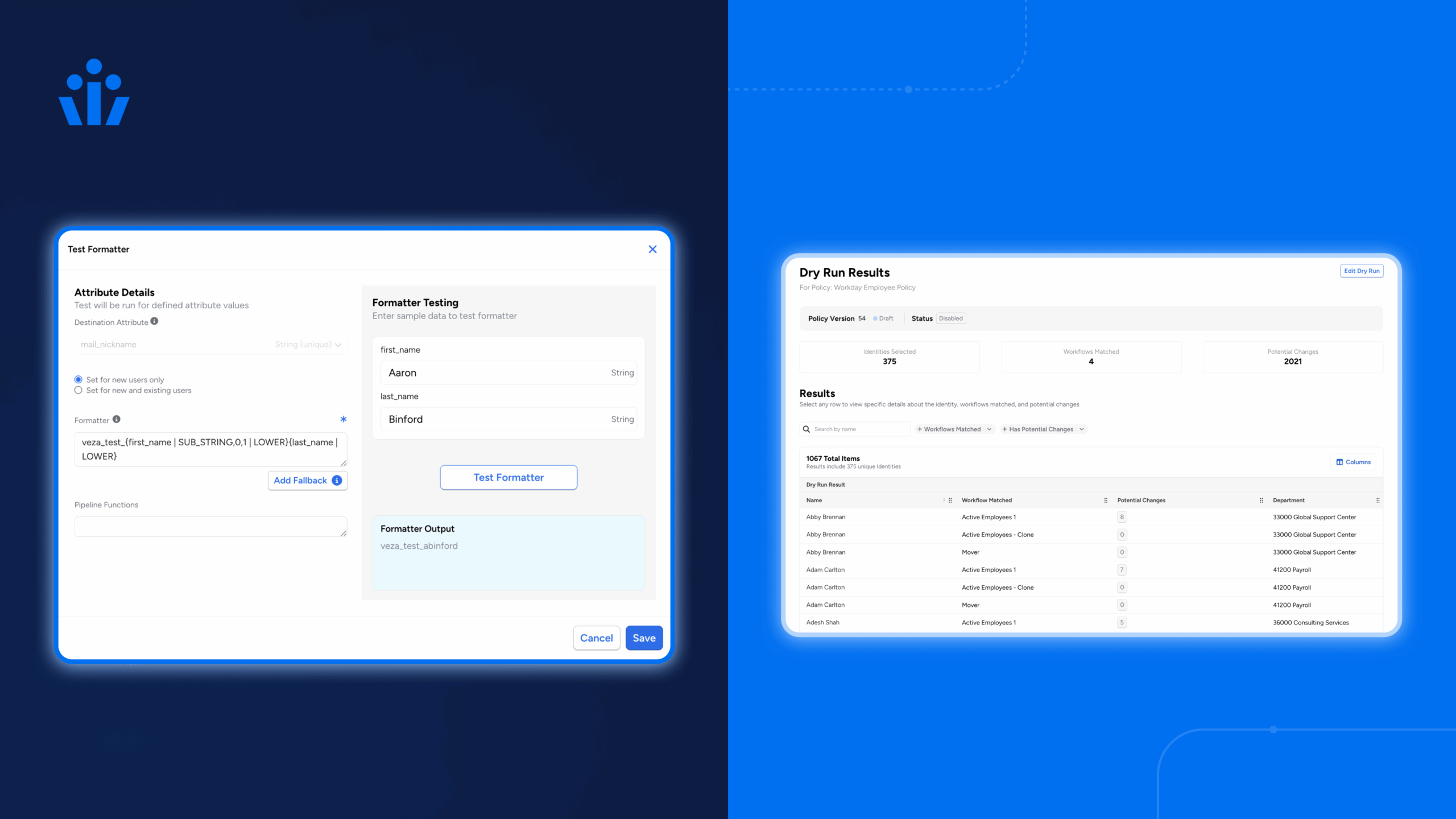 - Enhanced dry run to allow admins to see what happens all or a select group of users are simultaneously “run” through joiner, mover, and leaver workflows.