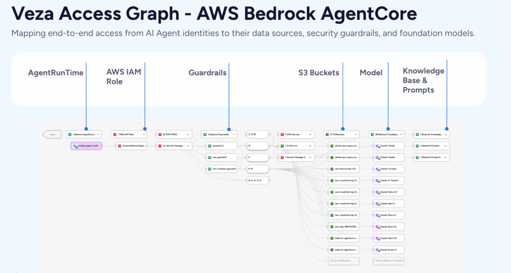 Veza maps access to the AgentCore resources themselves, ensuring that only authorized personnel can manage the AI lifecycle.