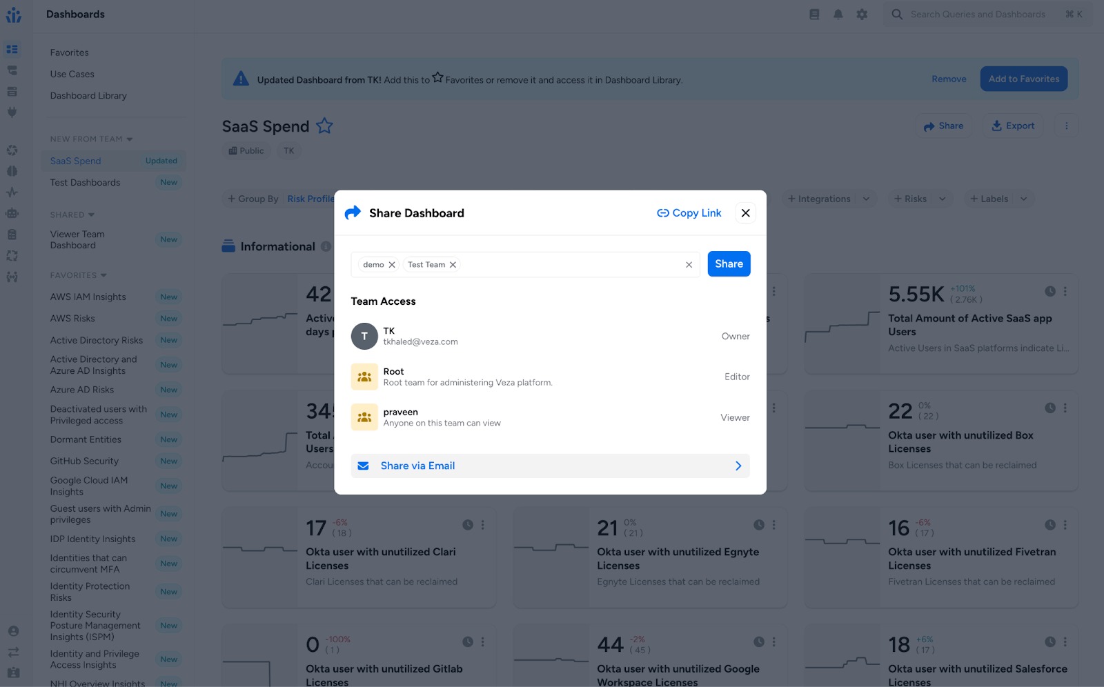 - Team-Based Dashboard Sharing – Share custom dashboards with specific teams, or with individuals via a direct email link.