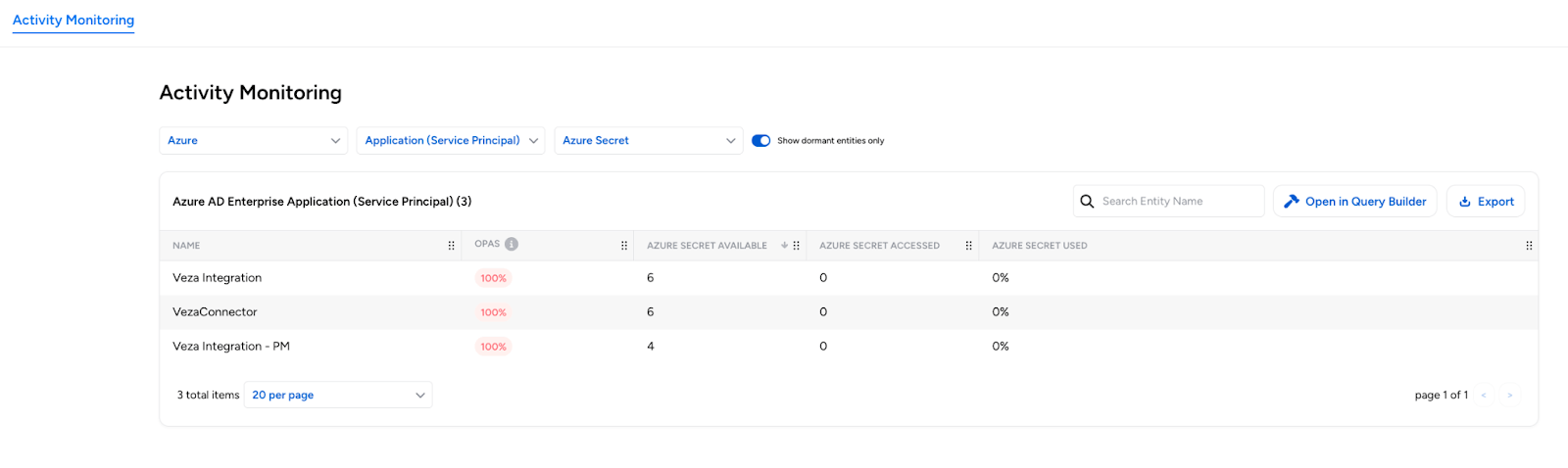 Azure Activity Monitoring: Veza Access Monitoring capabilities now support Microsoft Azure (including Entra ID, Azure Roles, and SharePoint Online), providing visibility into which Azure AD identities are actively using their assigned permissions versus those that may be over-privileged.