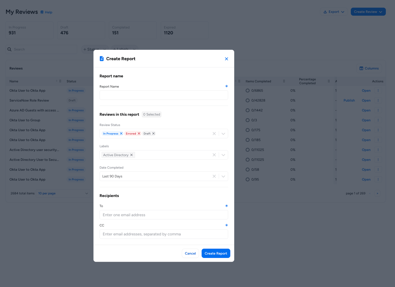 XLSX Reports: It’s now possible to generate consolidated Excel workbooks across multiple access reviews in a single file, for easier compliance reporting and audit preparation.