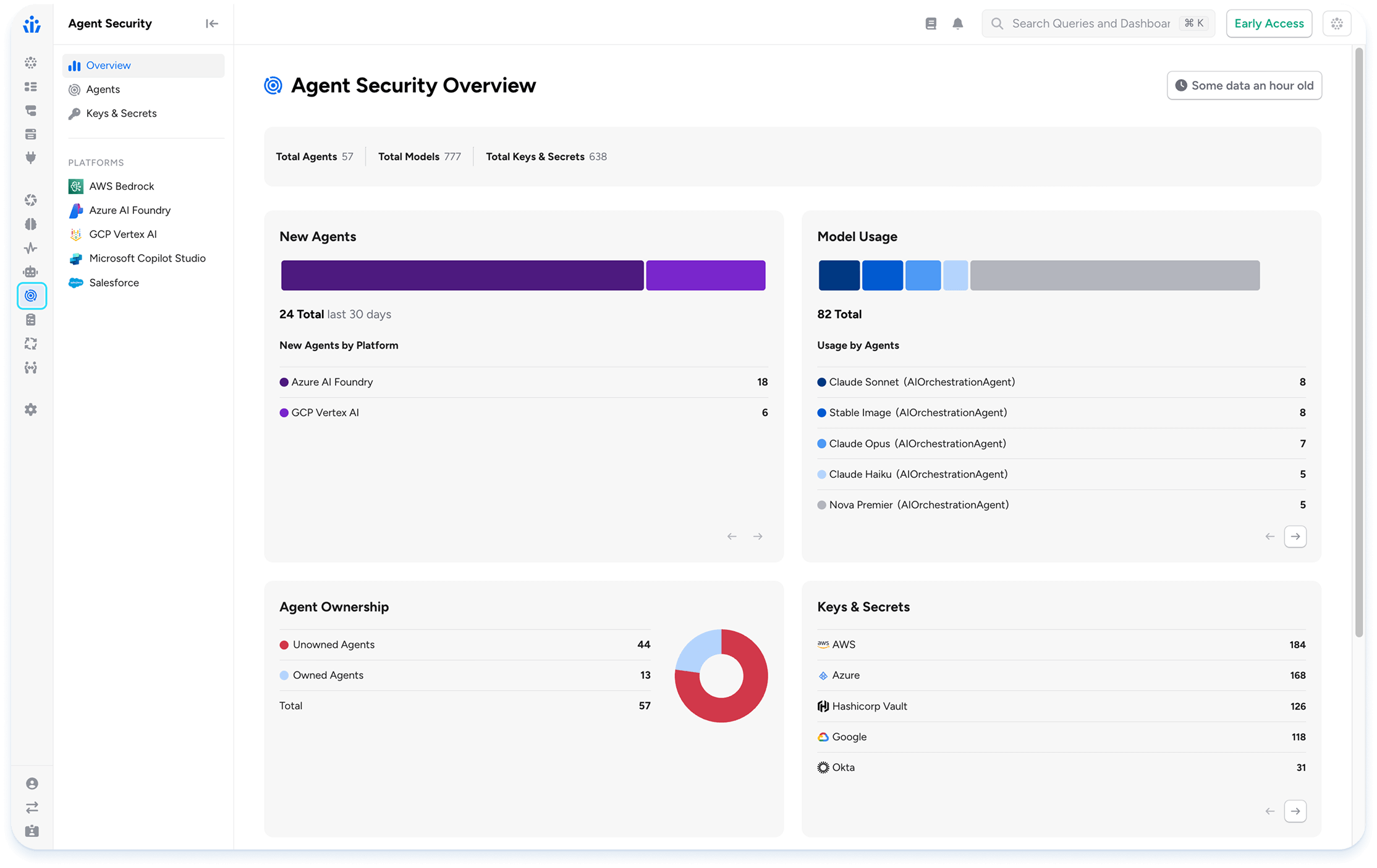 Protect, govern, and control AI agents at scale with Veza. Accelerate your AI initiatives with unified visibility and data-driven insights into the scale and scope of AI agents in your environment. Instantly understand what data and applications the AI agents have access to, map human owners, and visualize audit trails to establish robust AI Security Posture Management (AI SPM).
