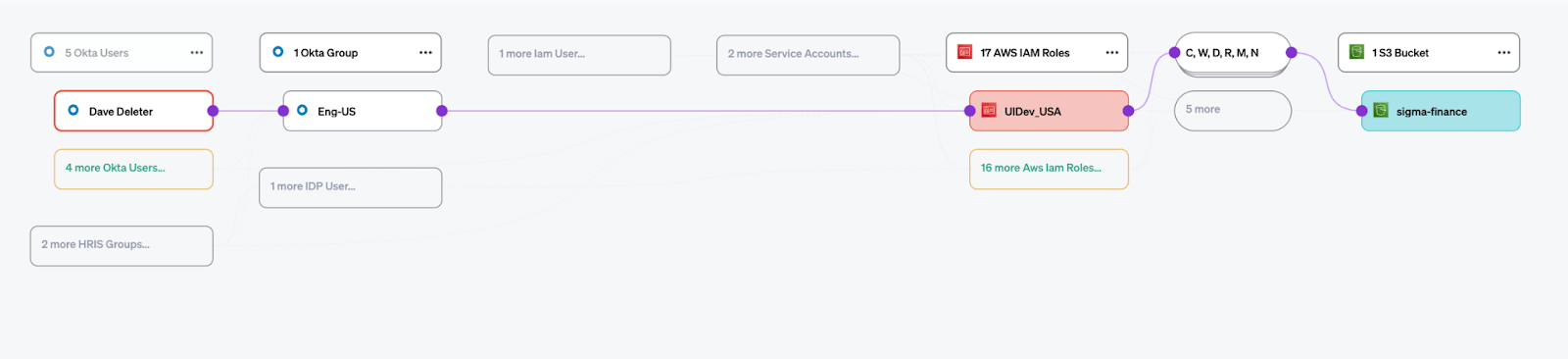 Most identity tools stop short of resolving these interactions. They can tell you a group membership, or a role assignment, but not the effective permissions that actually result. Veza calculates the real access outcome, across all systems, and translates it into business language – create, read, update, delete – so both technical and business stakeholders can make decisions without decoding vendor jargon.